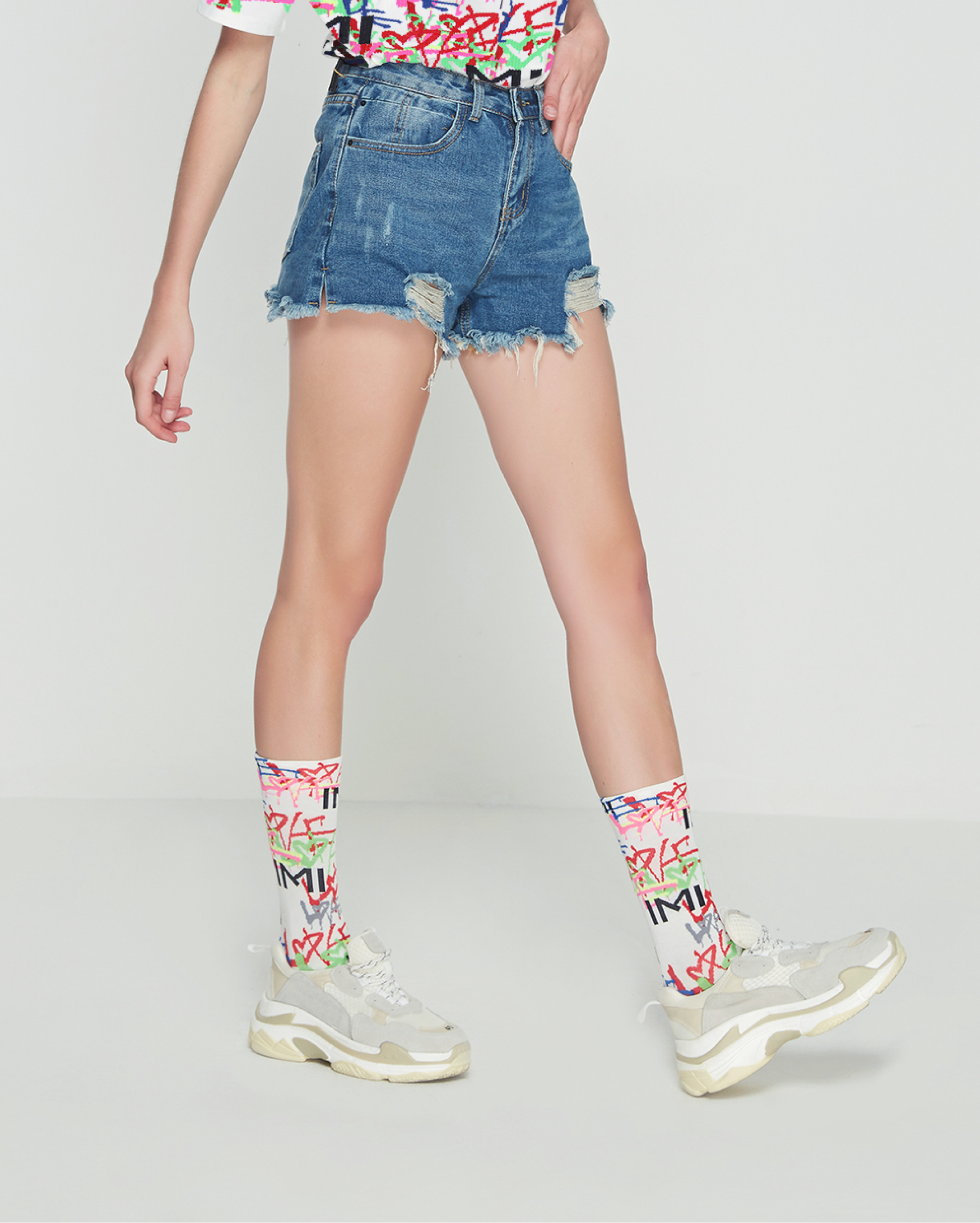 • IMI MBJ與現代塗鴉藝術家合作,這個塗鴉收藏主題為L.O.V.E,設計師用醒目大膽的生動色彩,把LOVE藏進襪子中,蘊藏其中,抽象塗鴉來表達不羈的自我風格,具有IMI MBJ " 做自己 "的精神,熱愛自己創造出的趨勢。