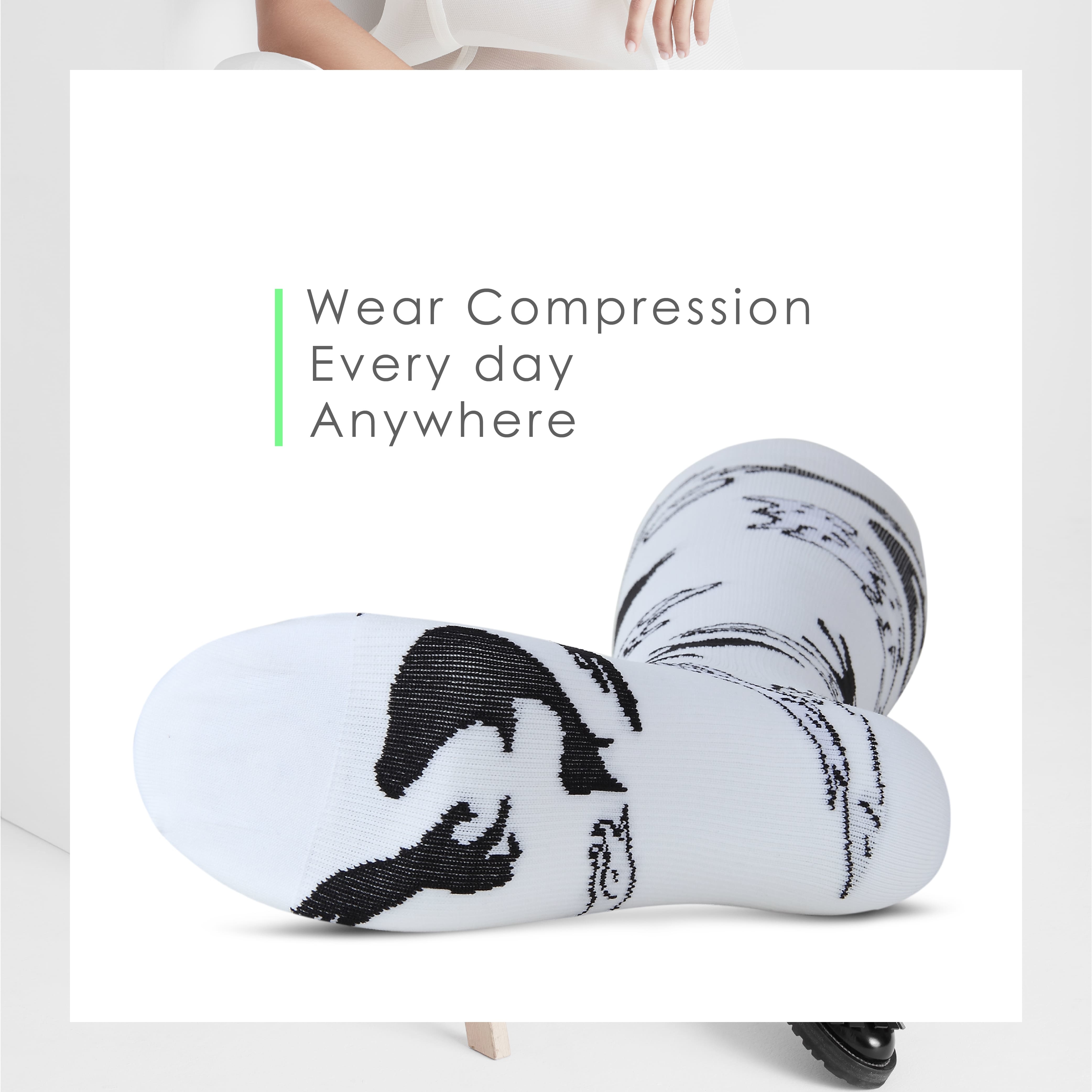 與東京設計師聯名的時尚壓力襪, 設計概念是以第一人稱視角描繪出狗英雄如何在驚險奇幻的人類世界,克服了重重難關與威脅,拯救一個還在襁褓中的小嬰兒,如果工作長時間久站久坐穿著IMIMBJ壓力襪足弓獲得足夠支撐,預防腿部水腫及靜脈曲張,將遠離年齡漸增導致的駝背、肌垂等身型