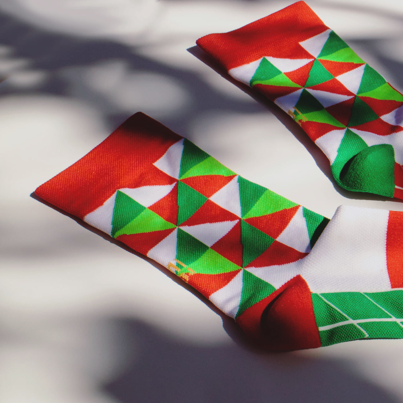 • 設計師以簡約的點、線、面構成抽象幾何的視覺,簡化概括出永恆且獨特的鑽石精神,高彩度配色形成強烈的視覺美感,讓腳上如鑽石般閃耀。